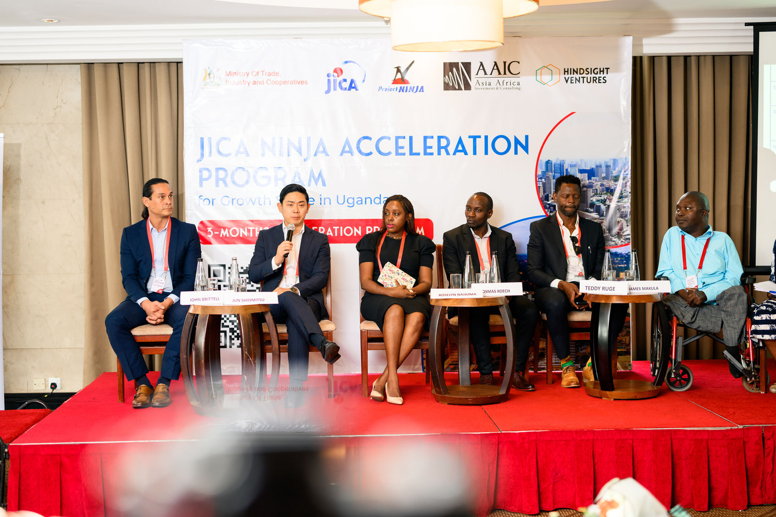 Speakers during a panel discussion after the official launch of the JICA NINJA Acceleration Program for Growth Stage Uganda - a transformative initiative designed to propel Uganda’s most promising growth-stage companies to new heights.