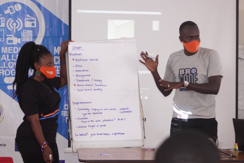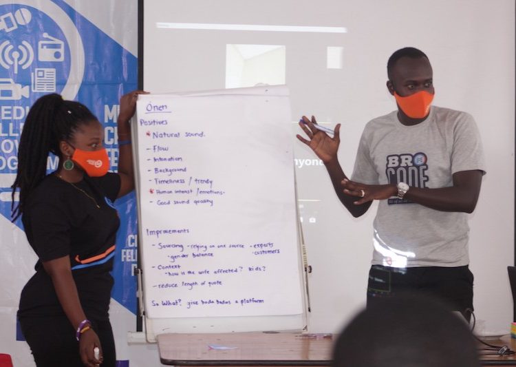 To conform to the health ministry’s guidelines, MCI has split its 2020 cohort into two groups that train concurrently in separate rooms, with another five other fellows attending the fellowship virtually via Zoom. Each day, the fellows learn from senior Ugandan journalists who specialise in different newsroom beats — from investigative, financial, agriculture, education, entertainment to environmental reporting.