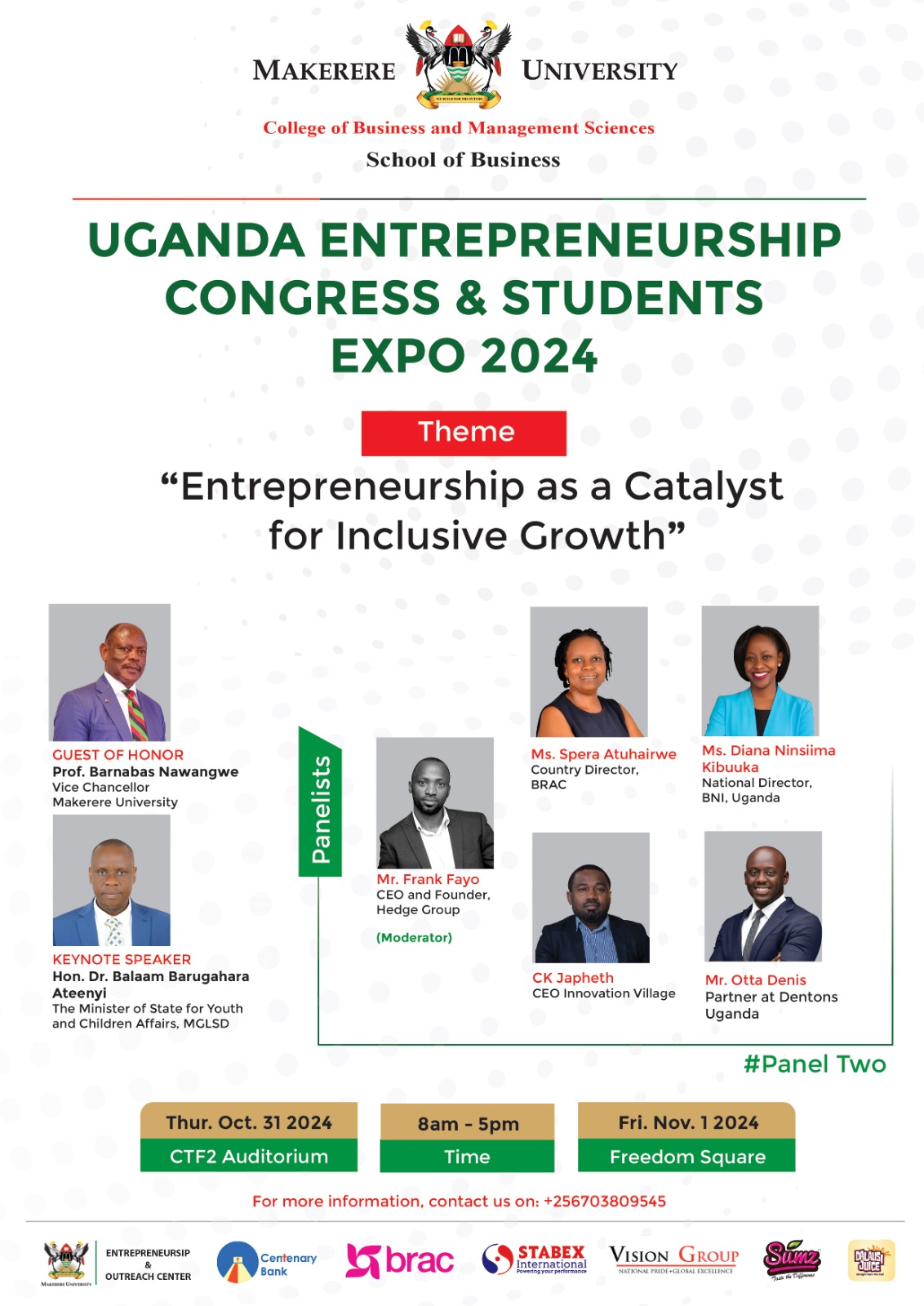 The second Uganda Entrepreneurship Congress will take place on October 31, 2024, while the 8th Annual Entrepreneurship Students’ Expo is scheduled for November 1.