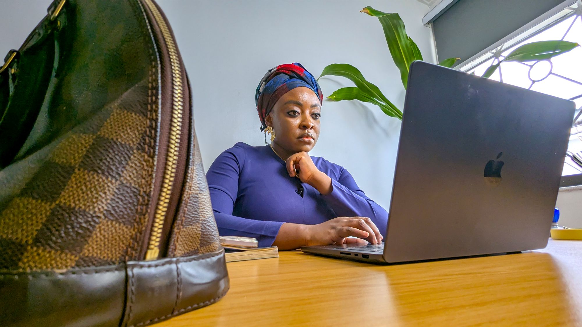 Amanda Etuk, a Nigerian Venture Capital operator, working on her laptop in her office, in Surulere, Lagos on October 9, 2025. Photo: Idongesit Essien, bird story agency